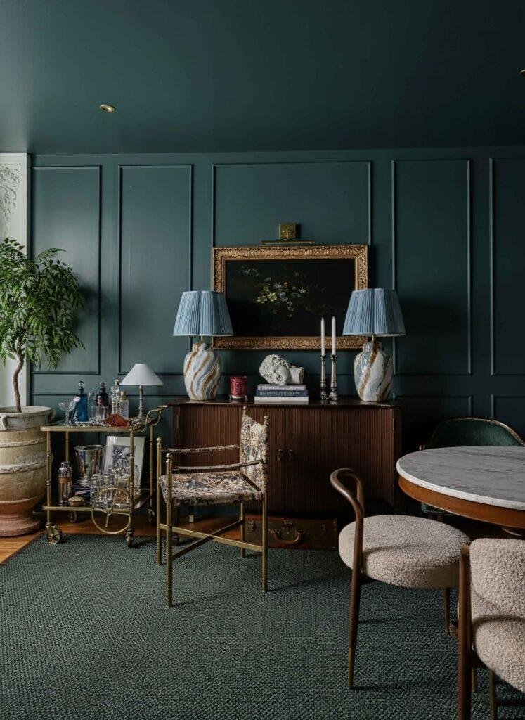Whether you go for a calming sage green or a moody navy, the result is immersive and elegant — a total transformation with just one color choice.