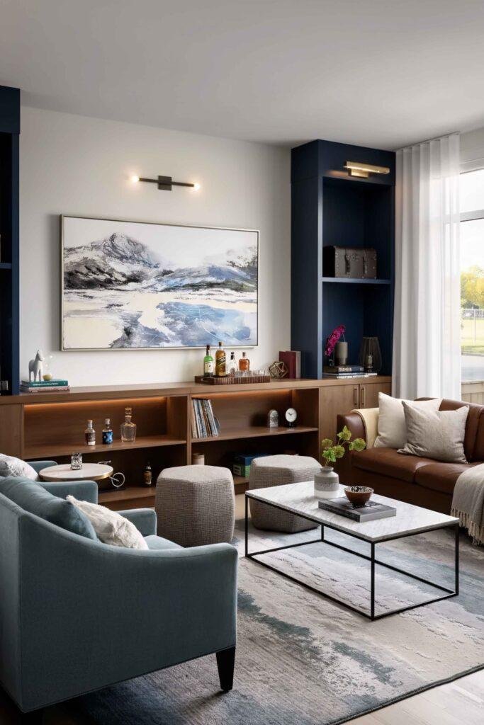 If you’re in the mood to create, make a DIY abstract painting or collage. Don’t limit yourself to framed art — mix in small sculptures, vintage finds, or textured objects to add depth and intrigue. Your walls tell your story, so make them dynamic.