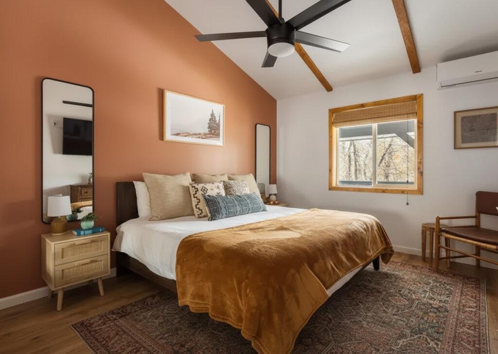 “Bedrooms should feel like sanctuaries,” says Velji. “Richer palettes with deep reds and warm browns bring that energy.”