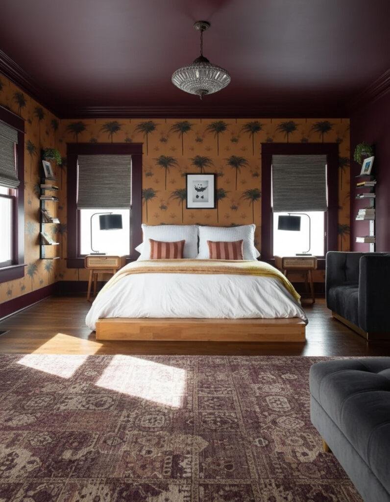 A: Yes, darker tones like deep plum or warm brown can make small rooms feel cozier if balanced with light bedding and décor.
